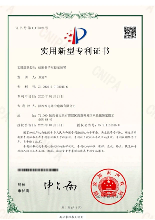 Official certification, product patent certificate & Type test report.